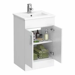 Toreno Small Vanity Sink With Cabinet – 500mm Modern High Gloss White